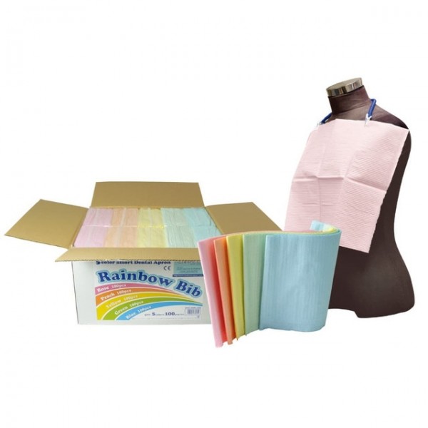 Medicom Rainbow Bibs- 33 x 45.5cm, 2-ply paper +1-ply poly, 500 bibs per carton